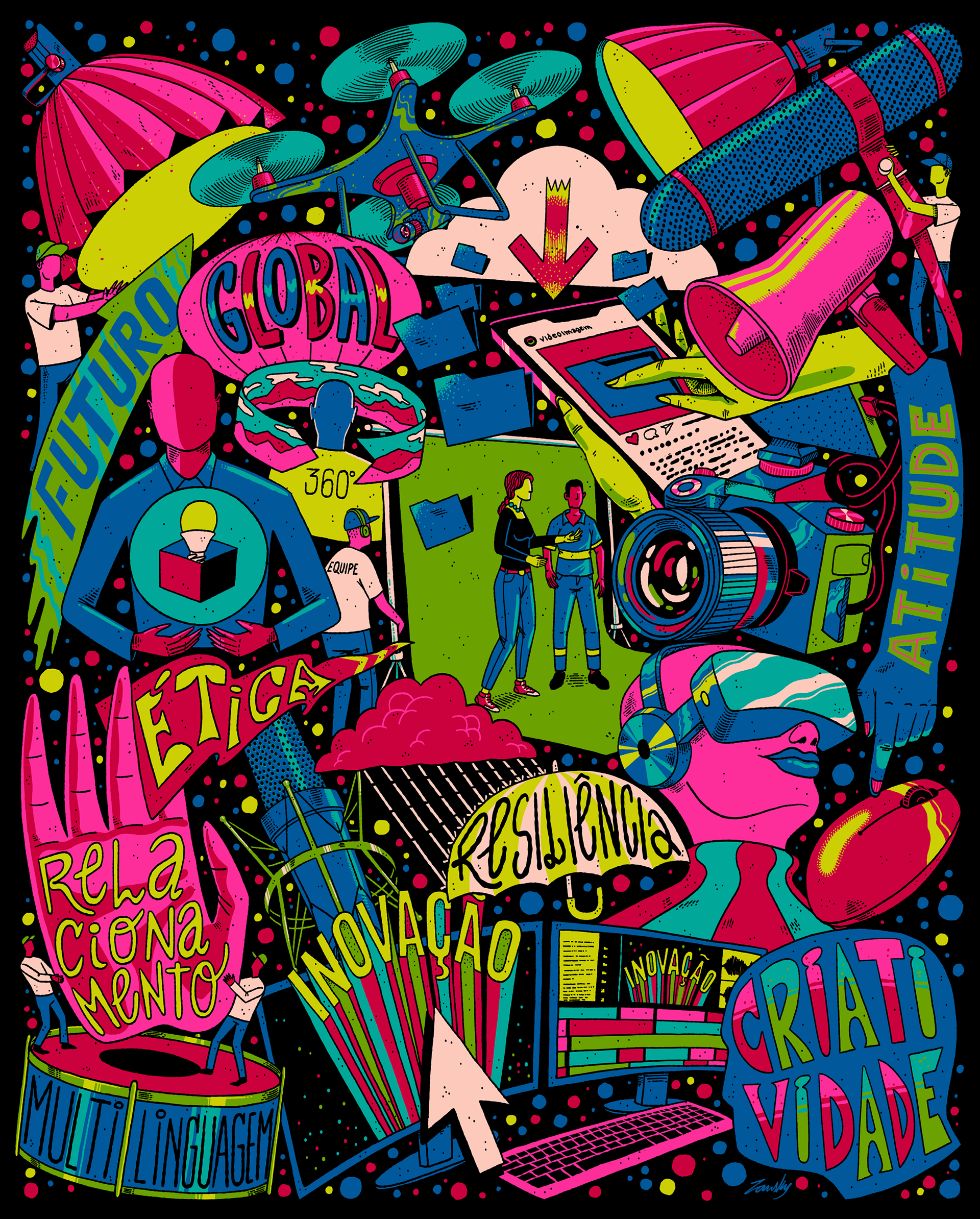Direção criativa e logo design para os 40 anos da VideoImagem. Ilustração: Zansky